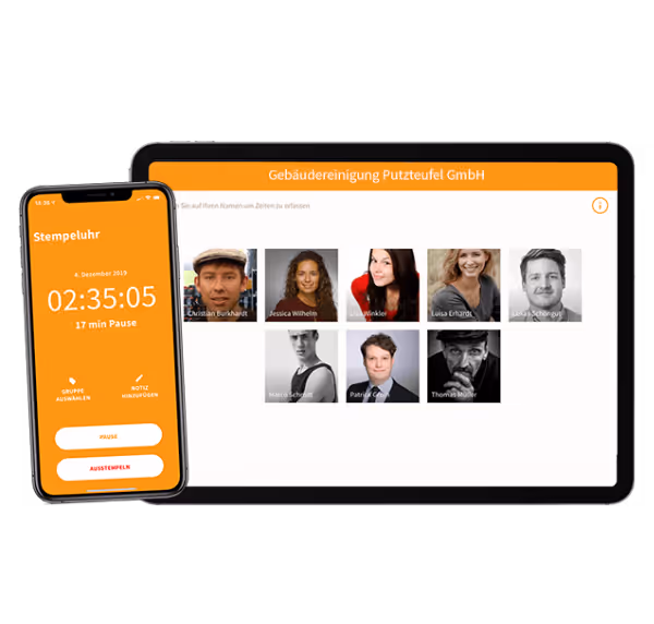 Mitarbeiter stempeln sich per Smartphone-App, Tablet oder PC ein und aus. Alle Zeiten werden automatisch ins System übertragen und sind sofort im Büro einsehbar.