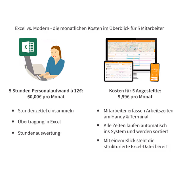 So einfach funktioniert eine moderne Zeiterfassung im Vergleich zu Excel